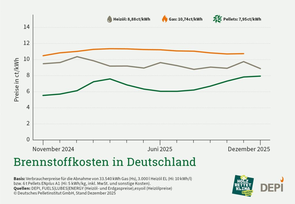 Unabhängig von saisonalen Effekten bleiben Holzpellets ein verlässlicher Energieträger mit hoher Verfügbarkeit aus heimischer Produktion. Gerade im Vergleich zu fossilen Brennstoffen zeichnet sich der Pelletmarkt weiterhin durch eine insgesamt hohe Preisbeständigkeit und regionale Wertschöpfung aus.